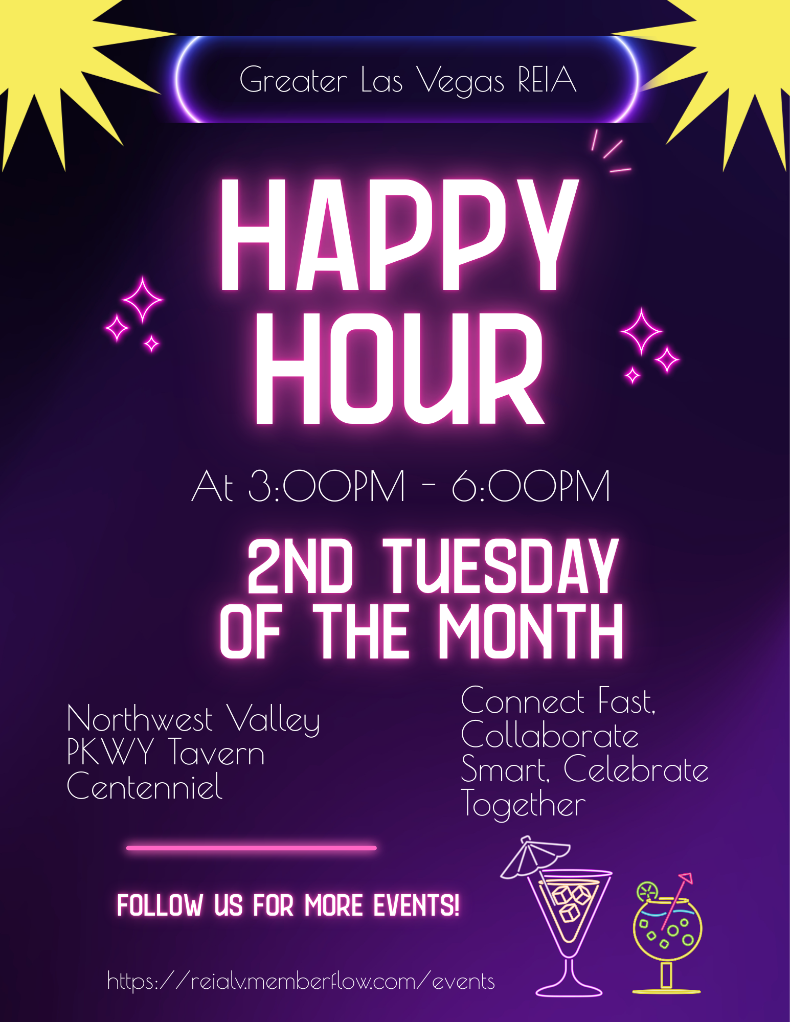 Step into the heart of Las Vegas' real estate scene at the Happy Hour Mixer—where opportunity meets ambition! This isn’t just a casual gathering; it’s where investors, lenders, and deal makers connect to spark new deals and build lasting relationships.