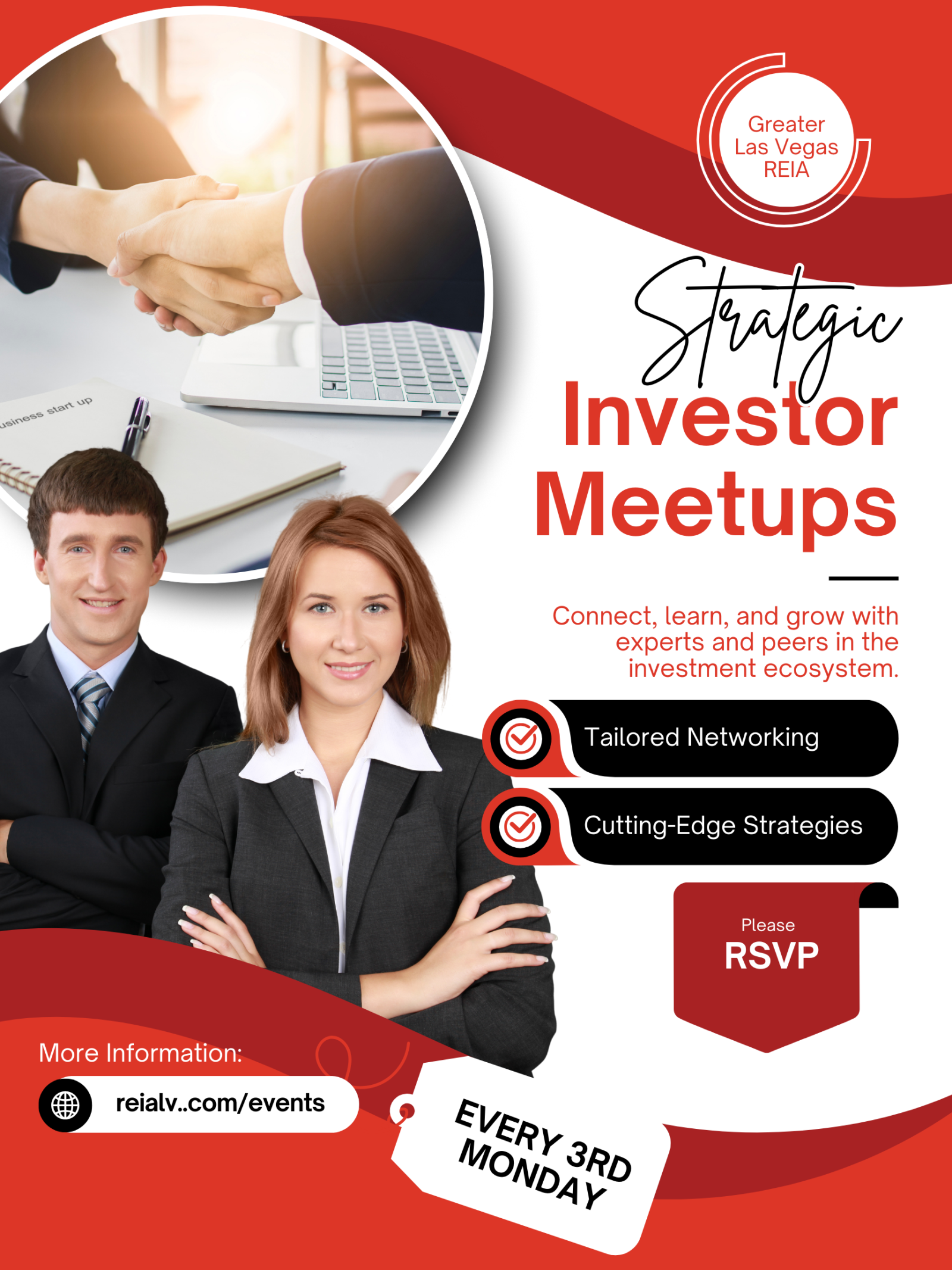Greater Las Vegas REIA does not provide legal or tax advice. Greater Las Vegas REIA (REIALV) provides a forum for education and networking, offering members access to trusted professional service providers and featured speaker programs through our meetings and events. While we may endorse certain professionals and resources, members are encouraged to exercise their own judgment and consult qualified advisers before making decisions. Speakers express their own opinions, and participation in REIALV activities is at each member’s discretion and responsibility.
